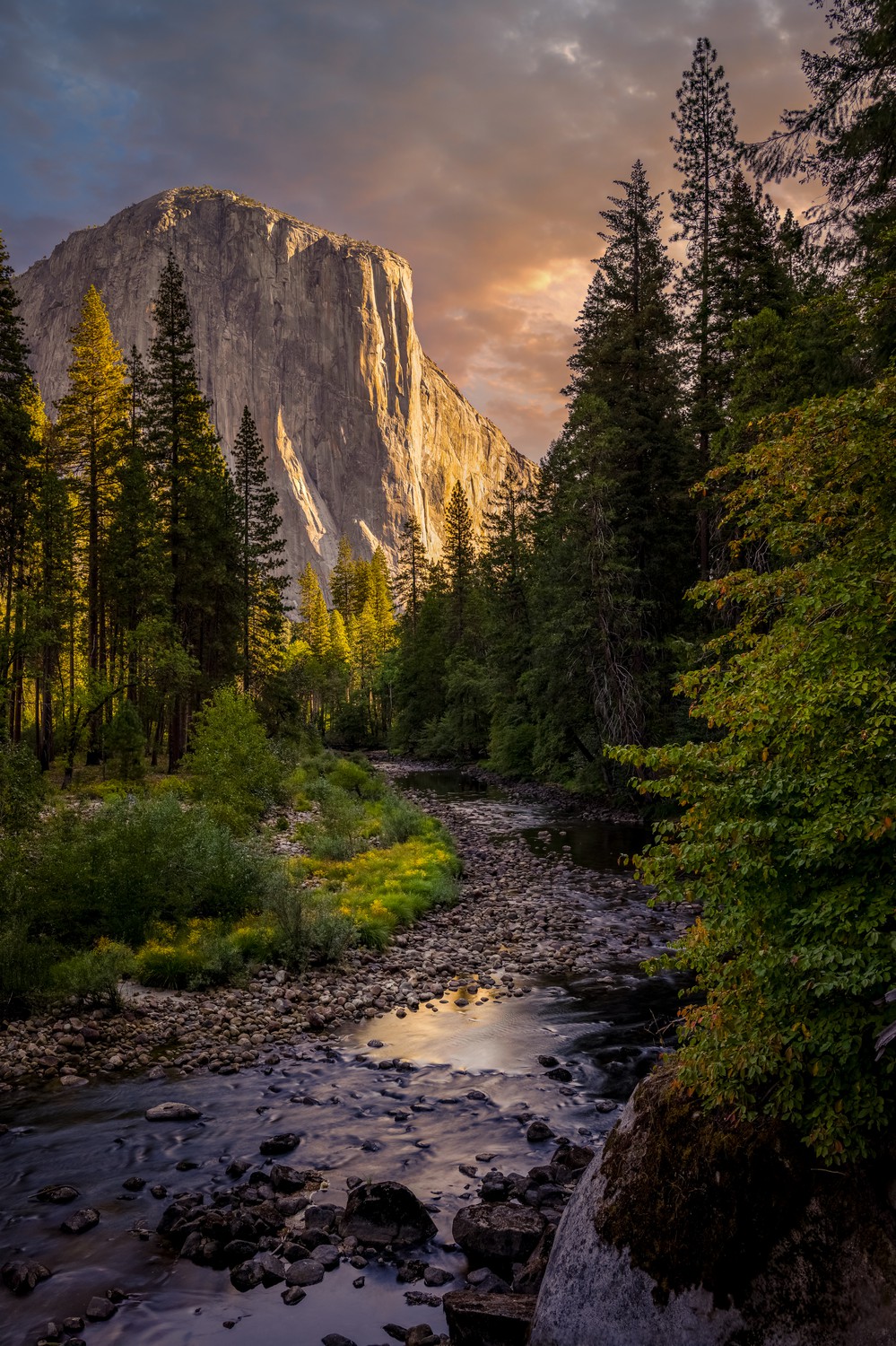 Sunrise over El Capitan, the Merced, and Yosemite Valley