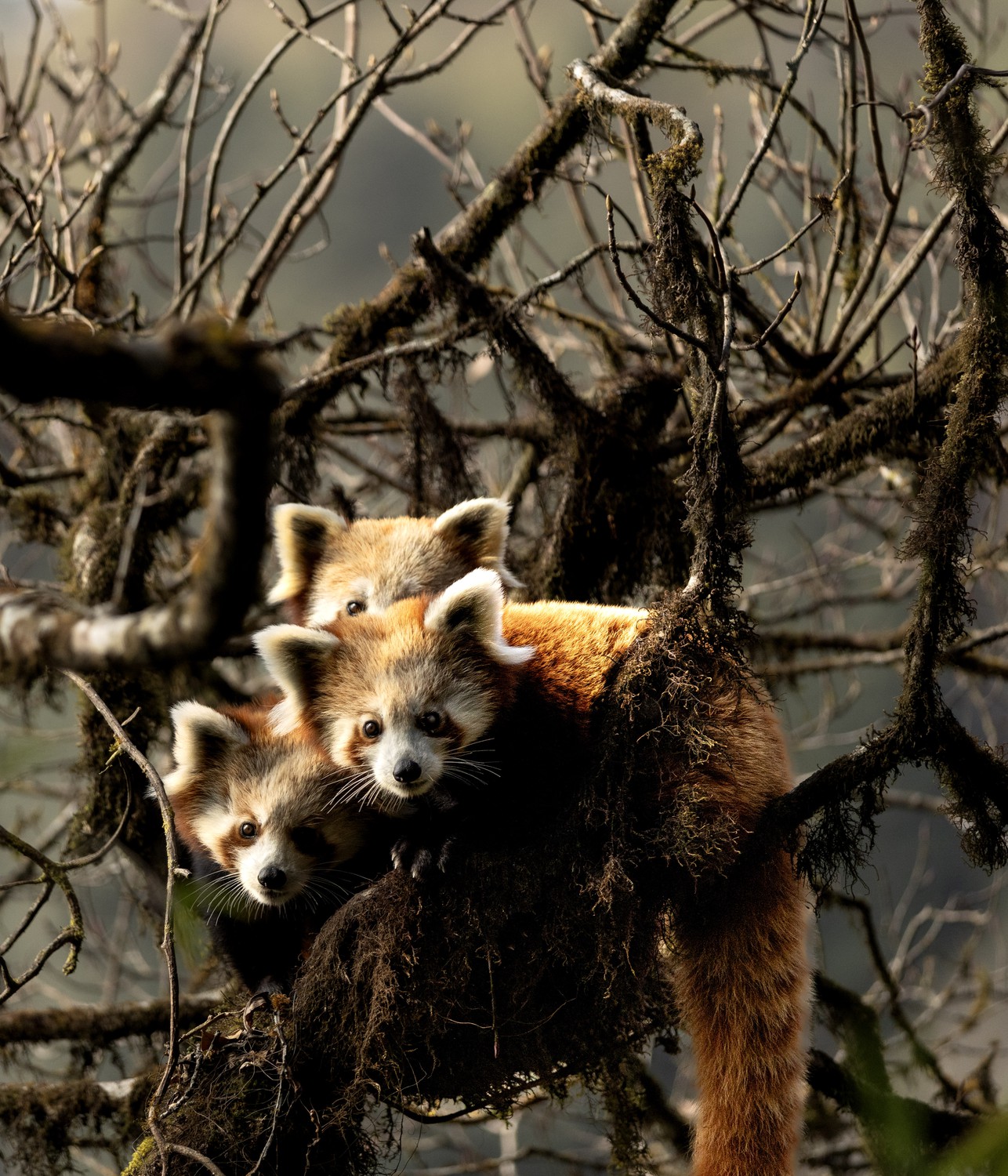 A Red Panda family in the forests of Singalila in Nepal. A rare beautiful specie, also known as the firefox for the color of its coat.