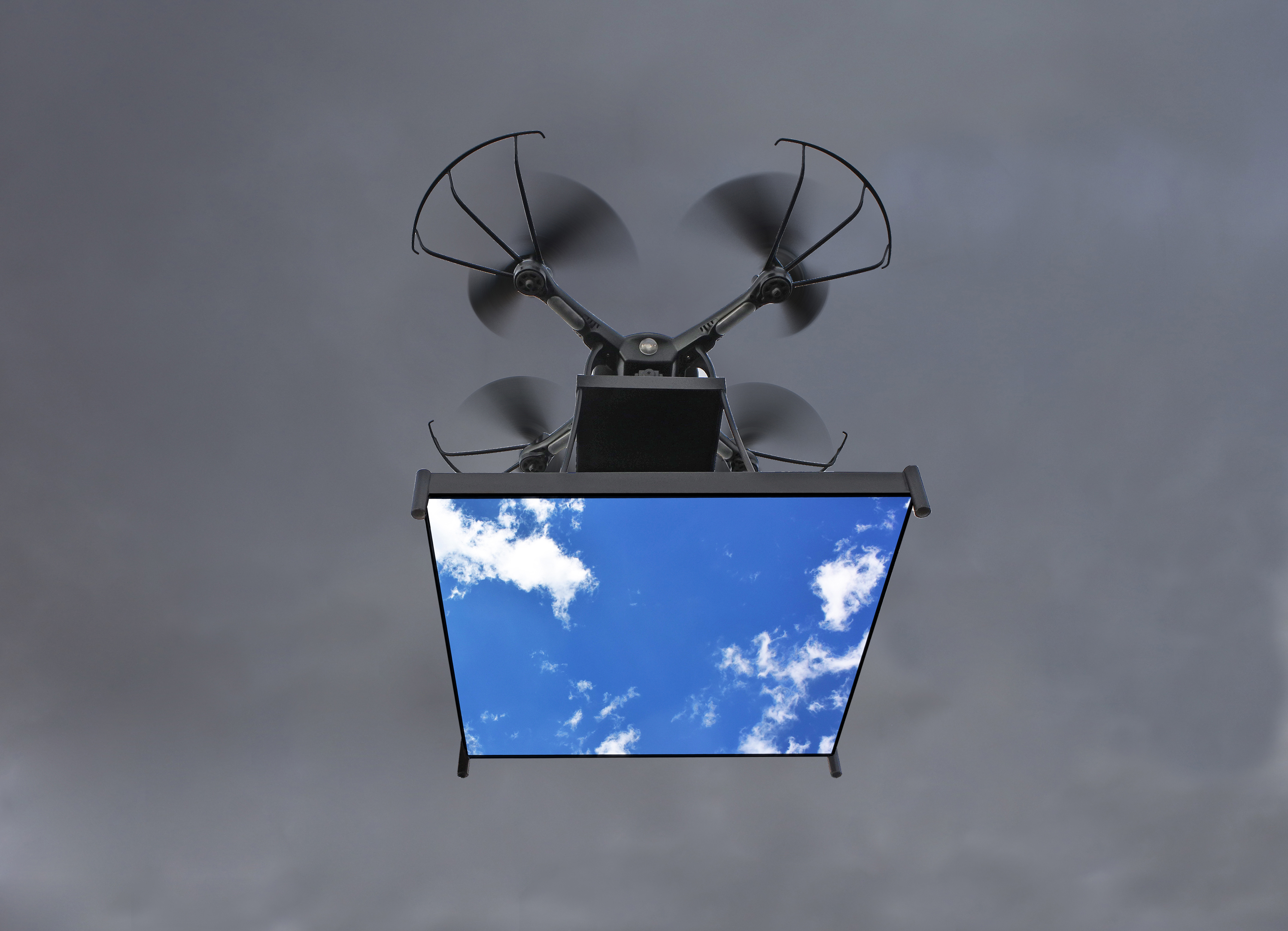This image from the "Living dead" series transcends the disfigured Mediterranean coastline. It reveals its cinematographic power and beauty underneath the concrete. As sandy winds bring a sinister haze shrouding the grim, orderly beach, the seashore becomes a film set where stories can be told.
