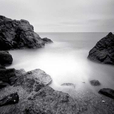 These images depict “my” sea, which through poor definition, black and white, square format and long exposure, achieve a dimension outside of time, hanging in the balance between reality and fantasy. -All the photos have been made with a pinhole camera (Zero 2ooo 6x6) and Ilford Delta 100/400 Pro.