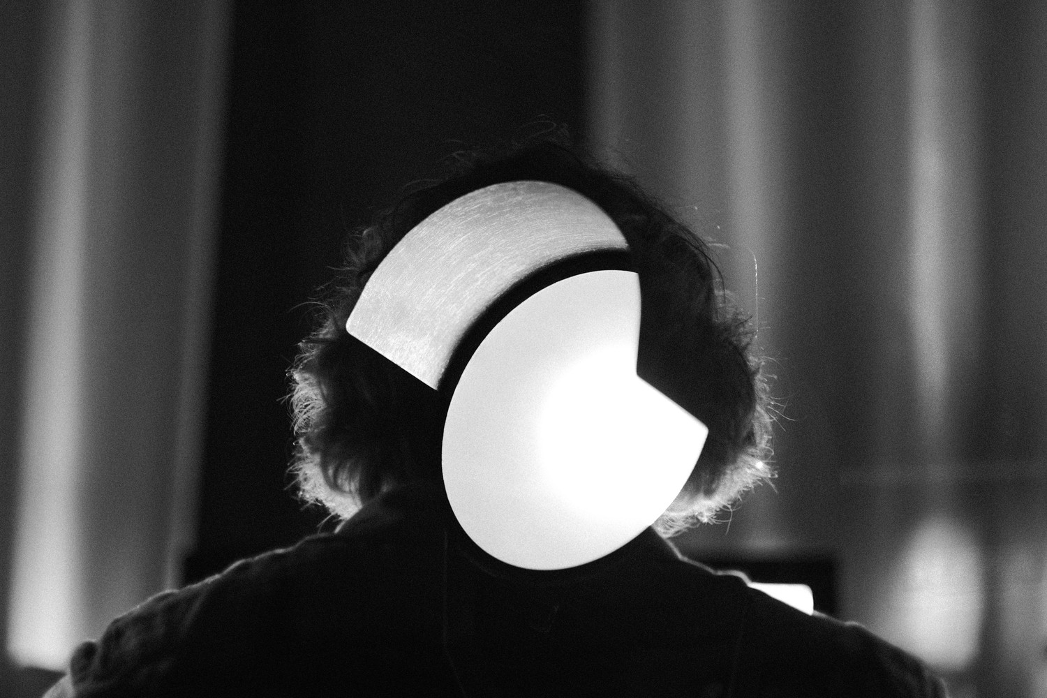 An abstract black-and-white image where a silhouetted head is intersected by bright, geometric shapes. The composition blends human form with minimalist design, creating a surreal effect that evokes themes of identity and perception. Light and shadow interplay for a thought-provoking visual.