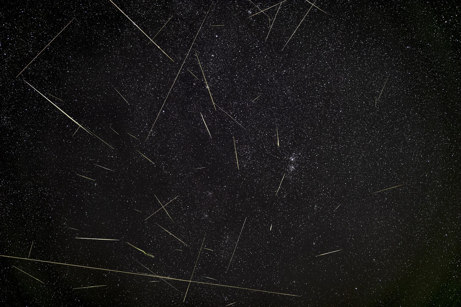 On a warm August night, the night sky near Death Valley National Park filled with streaking meteors from the Perseids meteor shower and other space debris. Hundreds of 5-second subexposures were taken throughout the night and later combined to create this image.