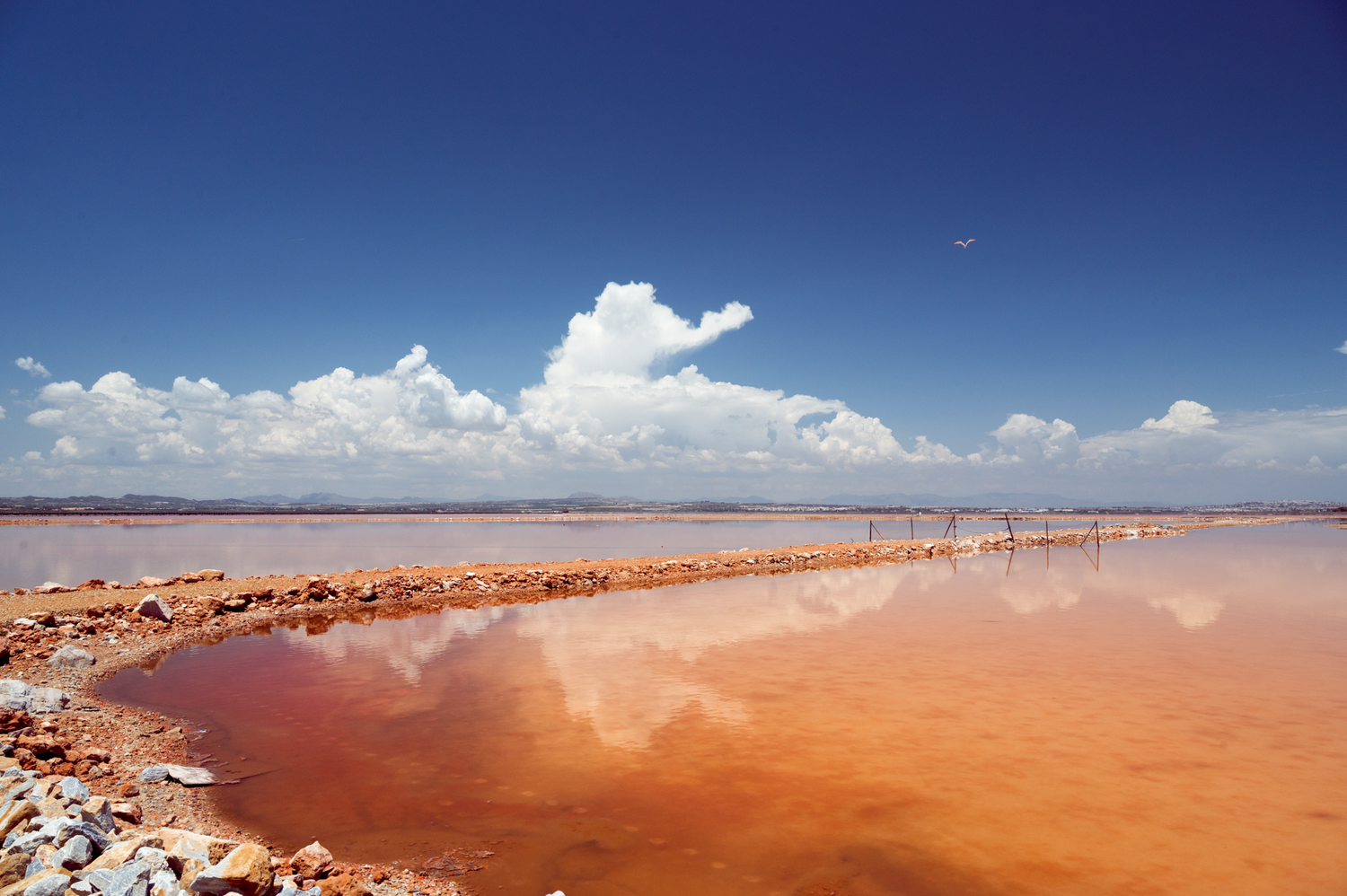 I was in Spain where they had Salt lakes with amazing colors! The water was a very warm opink hue colored by all the salt.