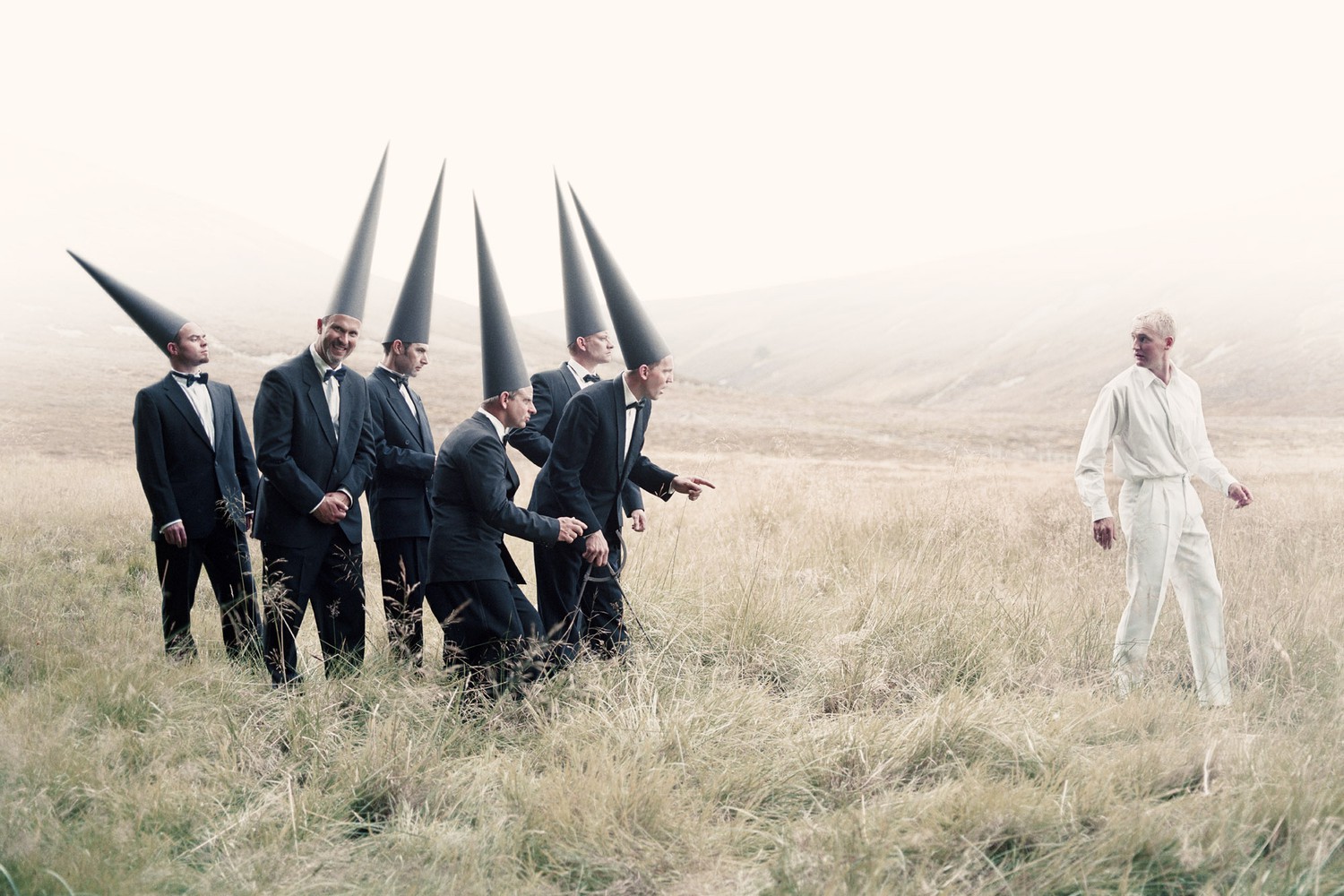 Part of the Conemen series. With this project I intended to create tableaux's with a sense of mystery, moments charged with human drama, yet with an ambiguity that allows each viewer to play out their own version of events. This was the first image in the series all produced in Scotland.