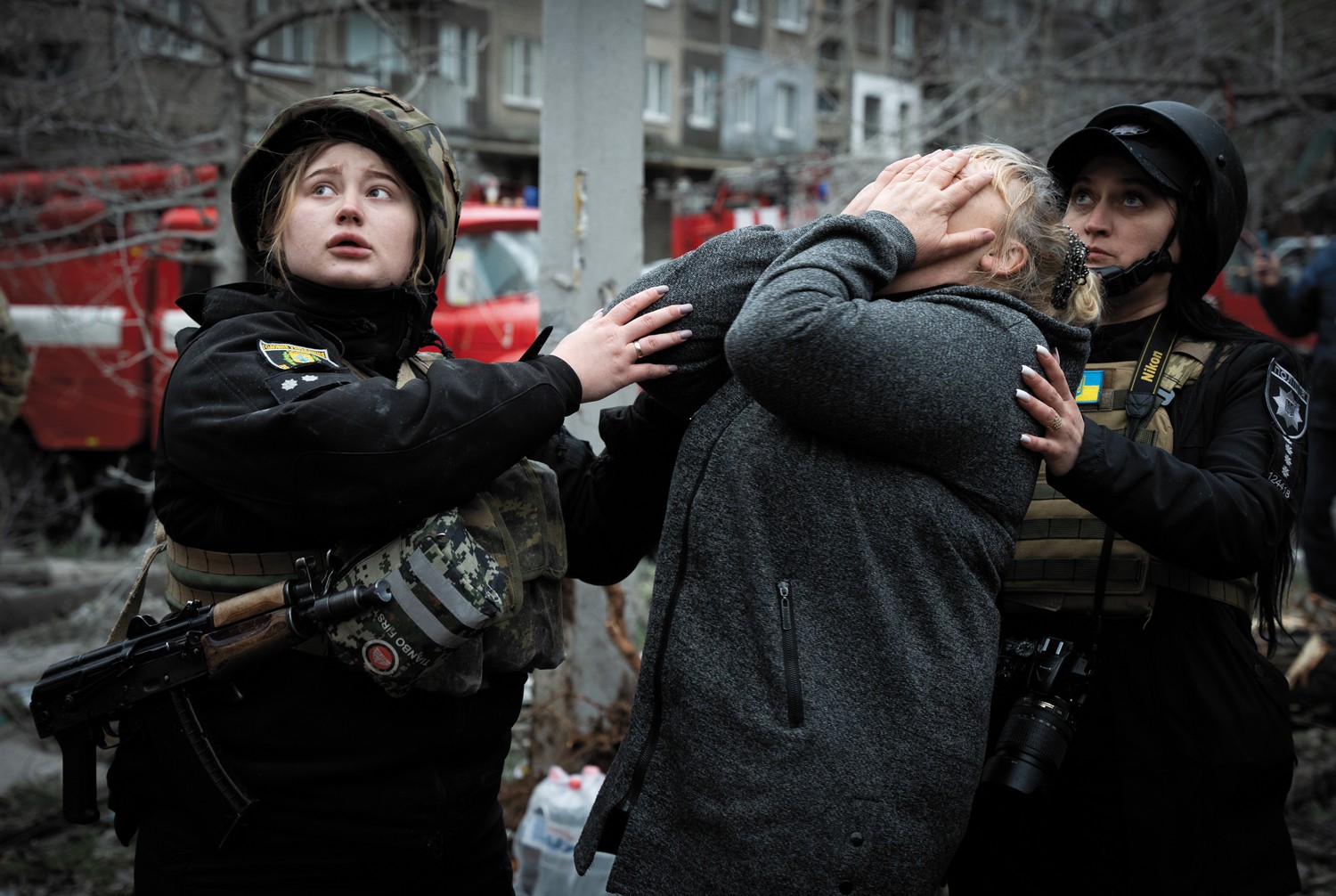 An elder woman reacting while waiting for the rescue of her 2-year-old grandchild from the rubble in the city Sloviansk, Donbas. The child later died in hospital due to injuries. Russian forces launched a rocket attack on 14th April to eastern Ukrainian city, resulting in 15 death and 24 injured.
