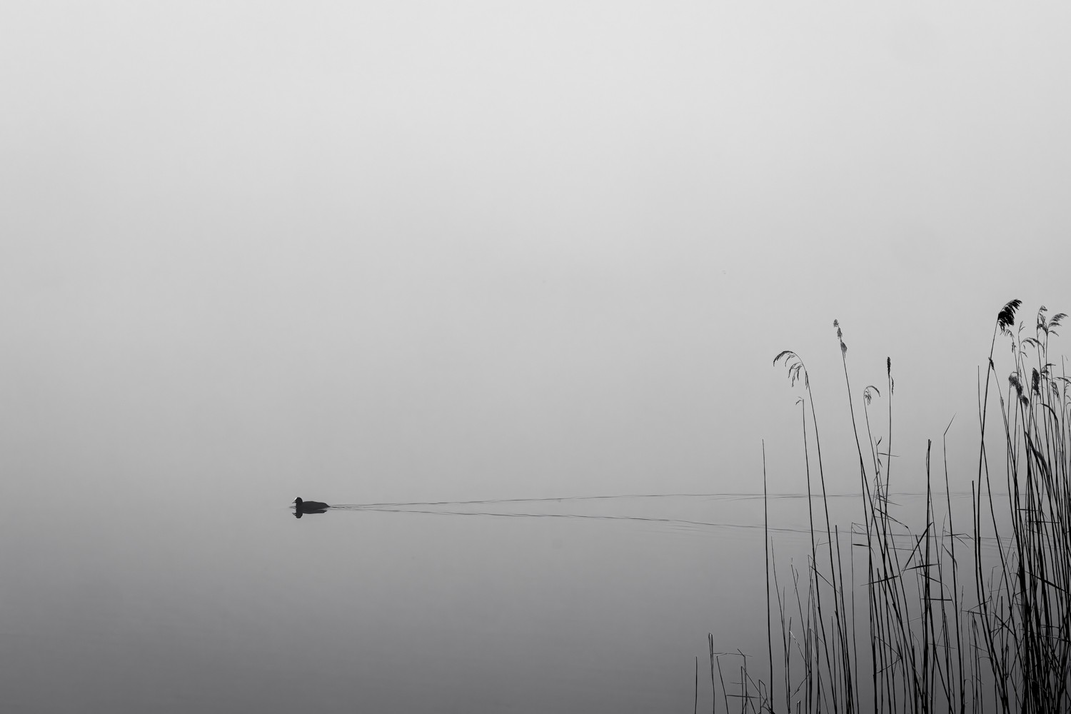 Early morning shot on the lake. Just a small coop was disturbing the still waters.