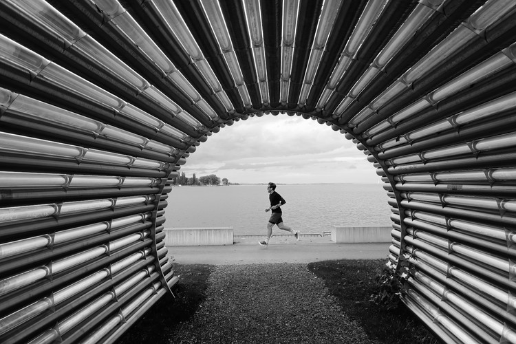 This series explores the rhythm of a single location that unfolds in passing figures. Their silhouettes suggest motion and transience against a landscape that remains.