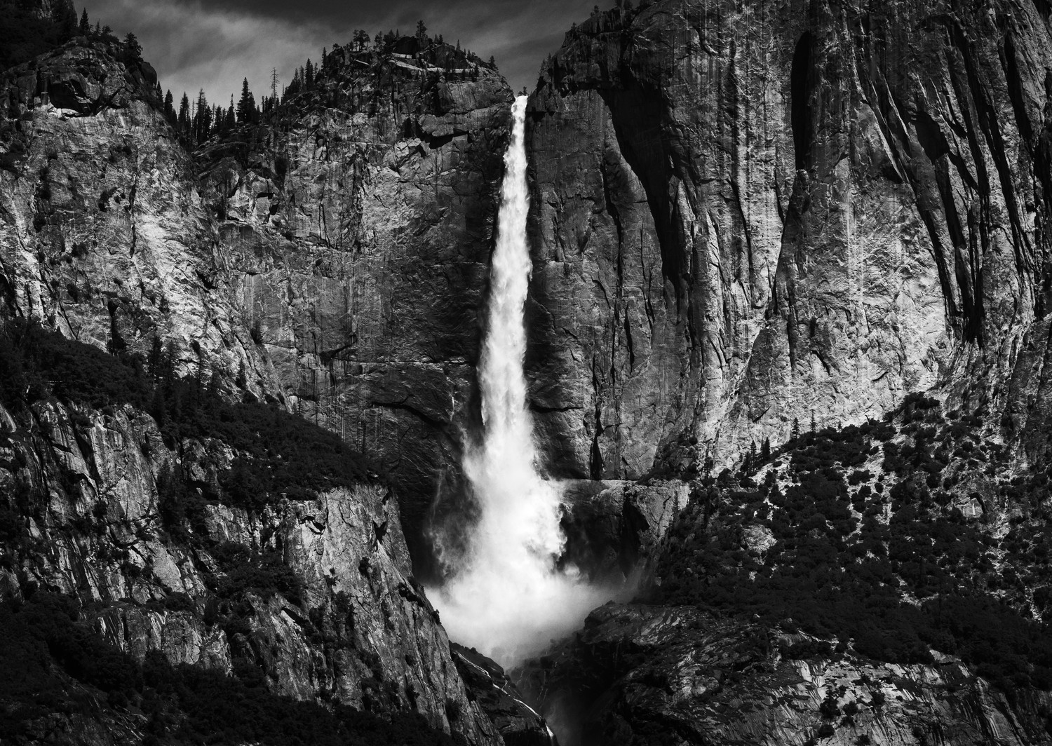 Yosemite Valley experienced a record-breaking snowfall. As snowpack melted, waterfalls cascaded down the iconic cliffs, with some roaring back to life after decades of dormancy and others flowing for the first time. Here, Yosemite Falls is captured in all its glory, pouring over the mountainside.