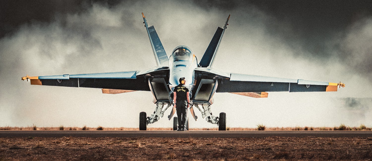 Angel Unleashed captures a Navy Blue Angel Super Hornet powering up as the crew chief conducts the pre-flight smoke check. The moment marks the shift from stillness to raw force—an aircraft and its team synchronized in precision, readiness, and unmistakable energy.