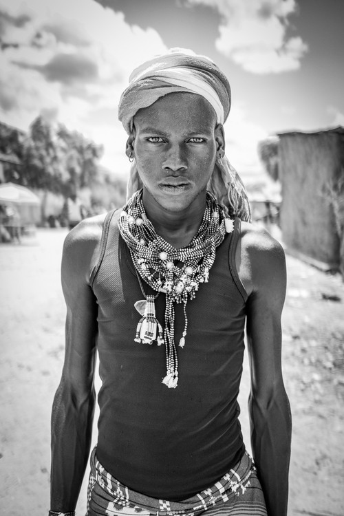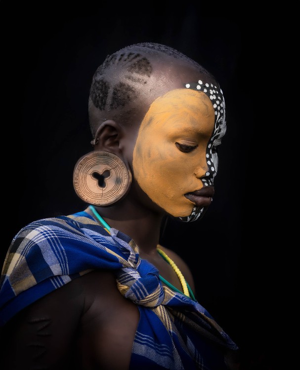 The Suri tribe is an ethic group of Ehiopia. Body painting, adornment with flowers and scarification are an expressive art. They create intricate multicolored patterns, covering the entire body. These decorations have no ritual value but are simply done for aesthetic reasons or certain occasions.