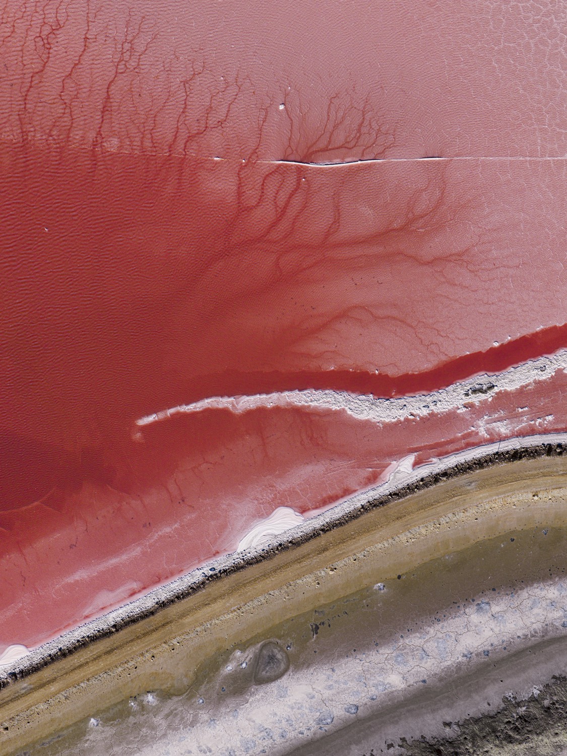 The pink salt lakes of Victoria, Australia are brightest after spring rains. The variations and intensity of colour are attractive for aerial photography.