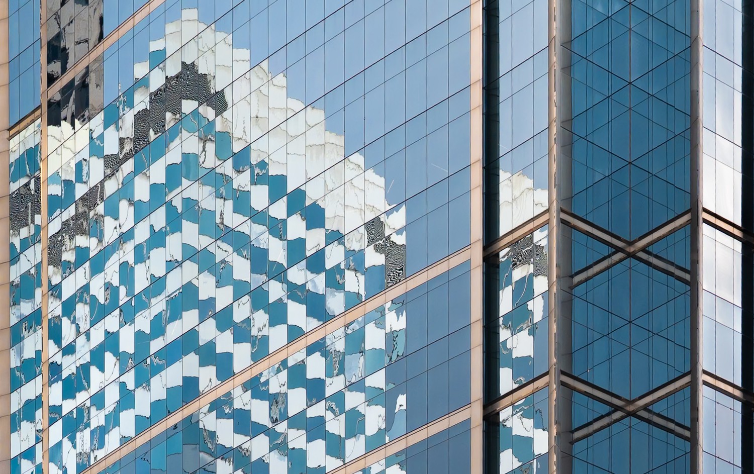 Each of these buildings have their own architectural personality but I was really taken by the combination of the reflection of one into the side of the other.