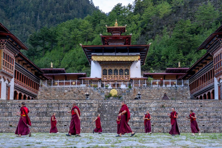Young Bhutanese monks rehearse sacred Cham dances, preparing for their role in upcoming Tshechu festivals — vital events in the Vajrayana Buddhist tradition. These dances are more than performance; they are acts of devotion, believed to bring blessings and drive away negative forces.
