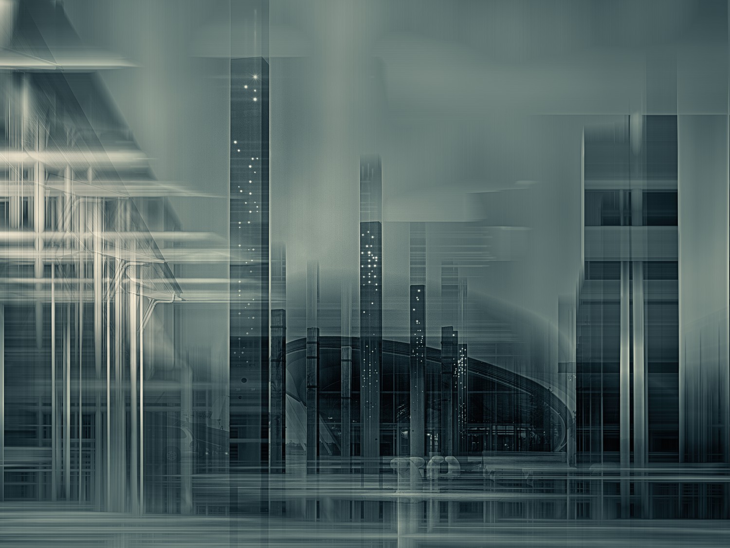 This image is an ICM and static double exposure of a building in Auckland, NZ known as The Cloud. It was created this way to produce an abstract feel to the image
