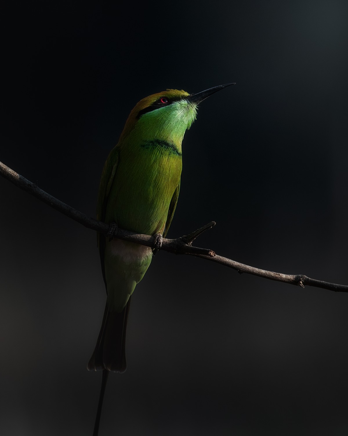 A solitary green bee-eater, lit by the last ray of evening light, embodies the calm of nature’s quiet corners. The dark backdrop reveals its beauty through simplicity — the essence of minimal wildlife storytelling.