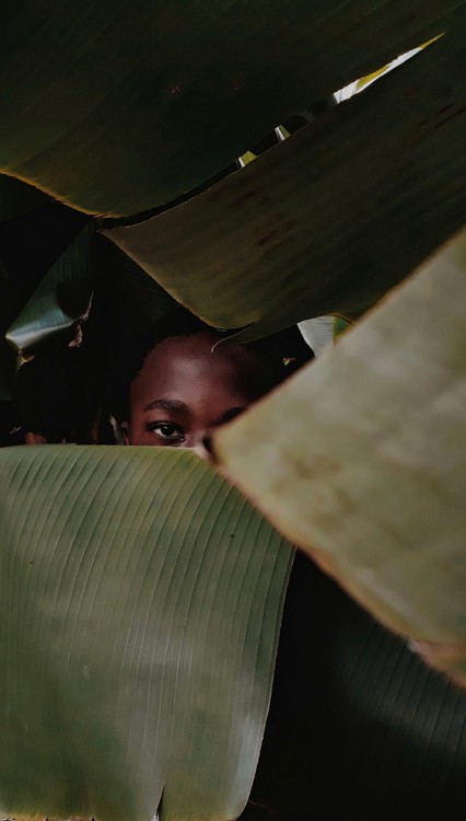 "FURTIVE" is a series that was born out of my grandmother's garden during Covid lockdown. The fullness of the banana trees in her garden always striked me. An idea quickly came to mind & I convinced my cousin to be the model. The essence of the images is to show quietness, observation and caution.