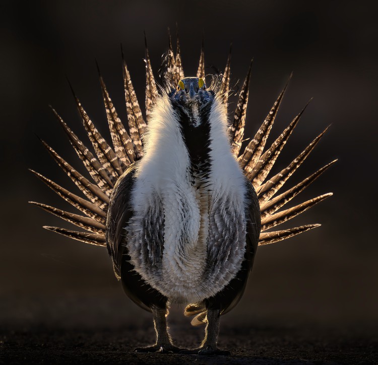 Earlier this year I was fortunate to visit a greater sage-grouse lek, an area in which the birds congregate to mate. I photographed this male midway through his song and dance as his air sacs were completely filled, and just prior to thrusting his head upward to produce his burbling sound