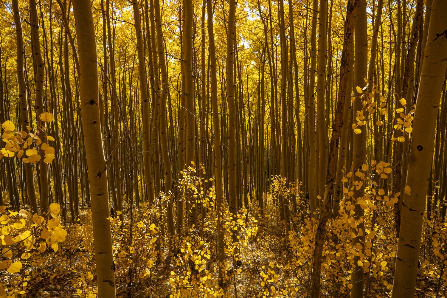 While on a hike at around 10,000 ft in the mountains outside of Santa Fe, New Mexico, this dense stand of Aspens caught my eye. The density of the canopy and the peak colors were aglow in the late afternoon sun creating a spectacular "golden hour".