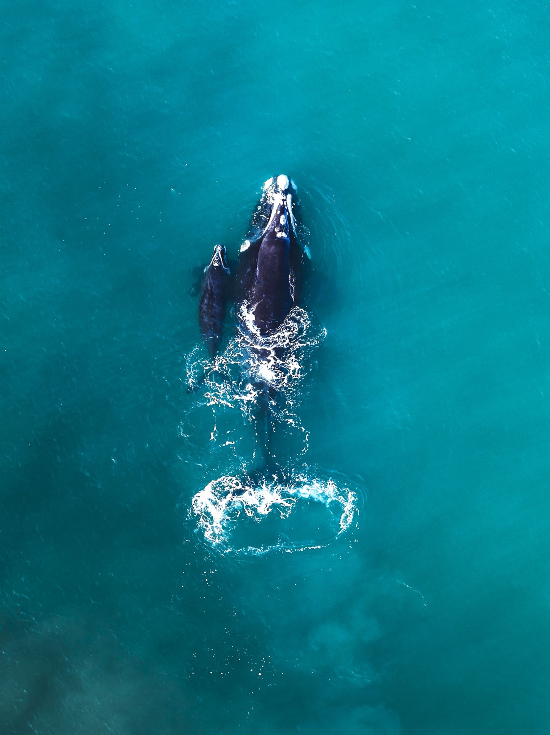 Two mothers and their calves pause at my hometown beach — a rare, tender moment before their long migration south.