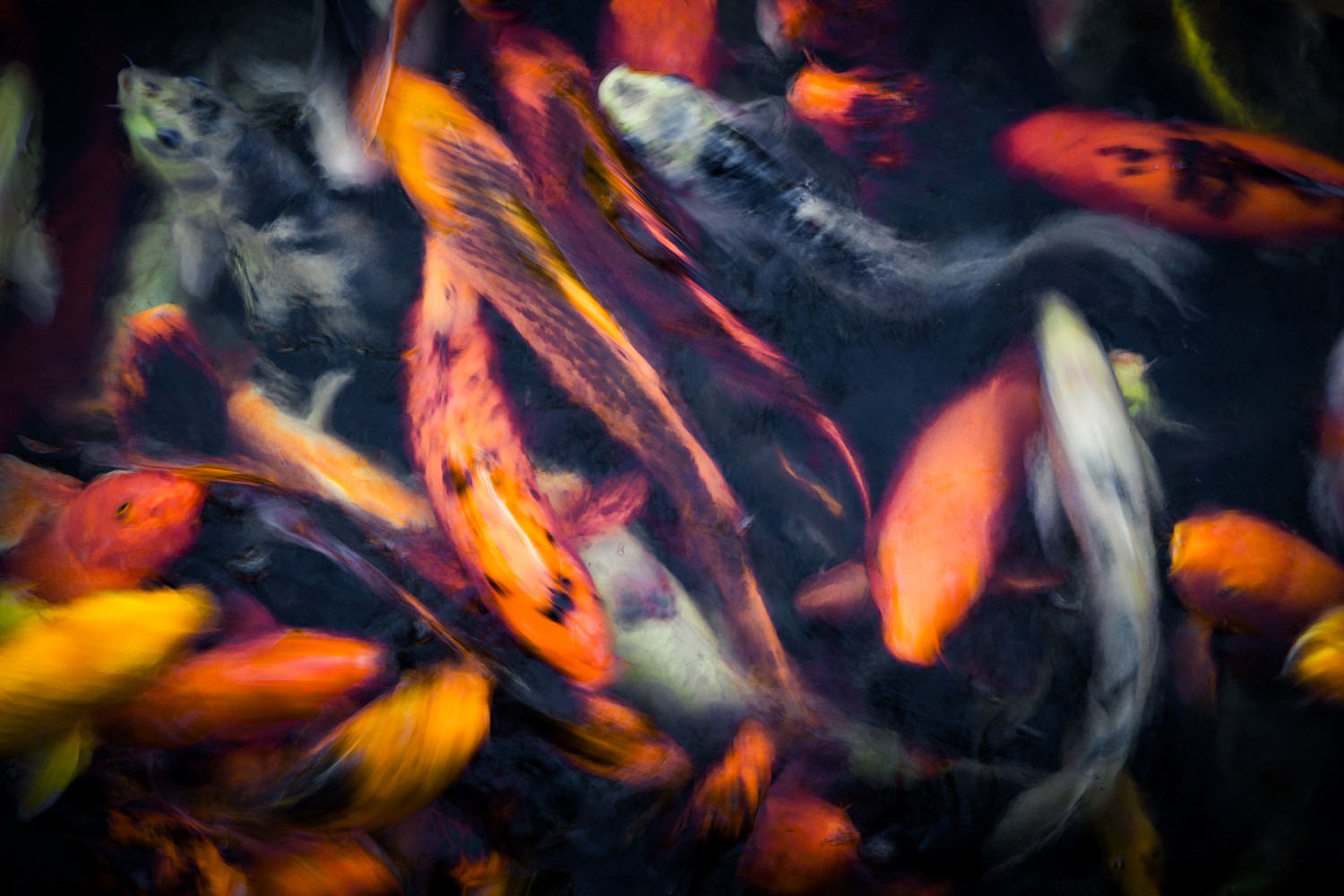 As koi glide beneath the water’s surface, their movements create swirling reflections and ripples, blending color, light, and motion into an ever-changing abstract canvas—fluid, serene, and endlessly captivating.