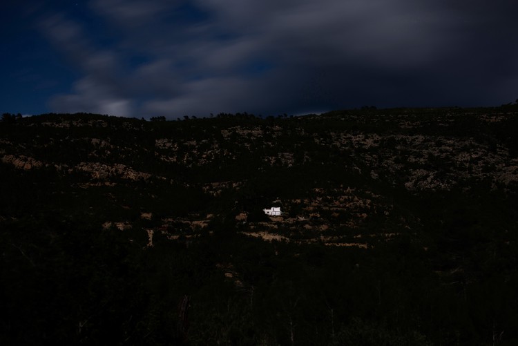 Ibiza fincas in the sole light of the full moon. These traditional landscapes of terraced farmland, created over the centuries with miles of dry stone walls carved out of the forest, are given meaning by the whitewashed stone-built farmhouses.