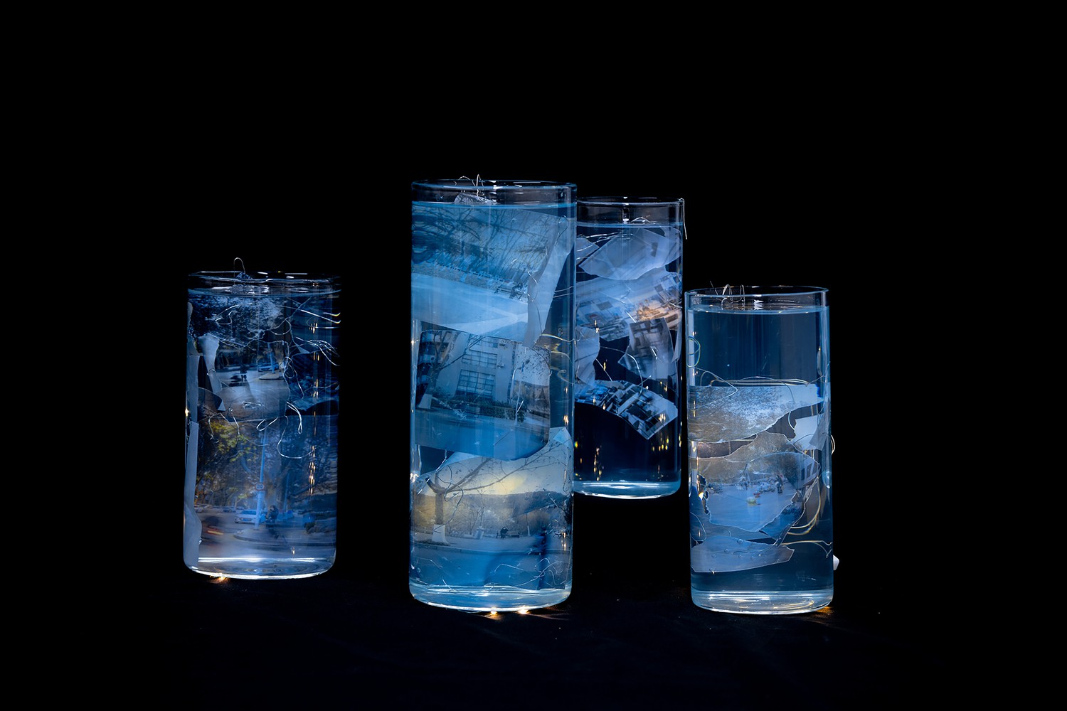 "Silence in B-Flat" investigates localized histories of mediated public space. By making hundreds of exposures and selectively averaging frames, I assume editorial control—toggling positions of stoplights, illuminated windows, and cars. The resulting scenes reconstruct time, creating new narratives.