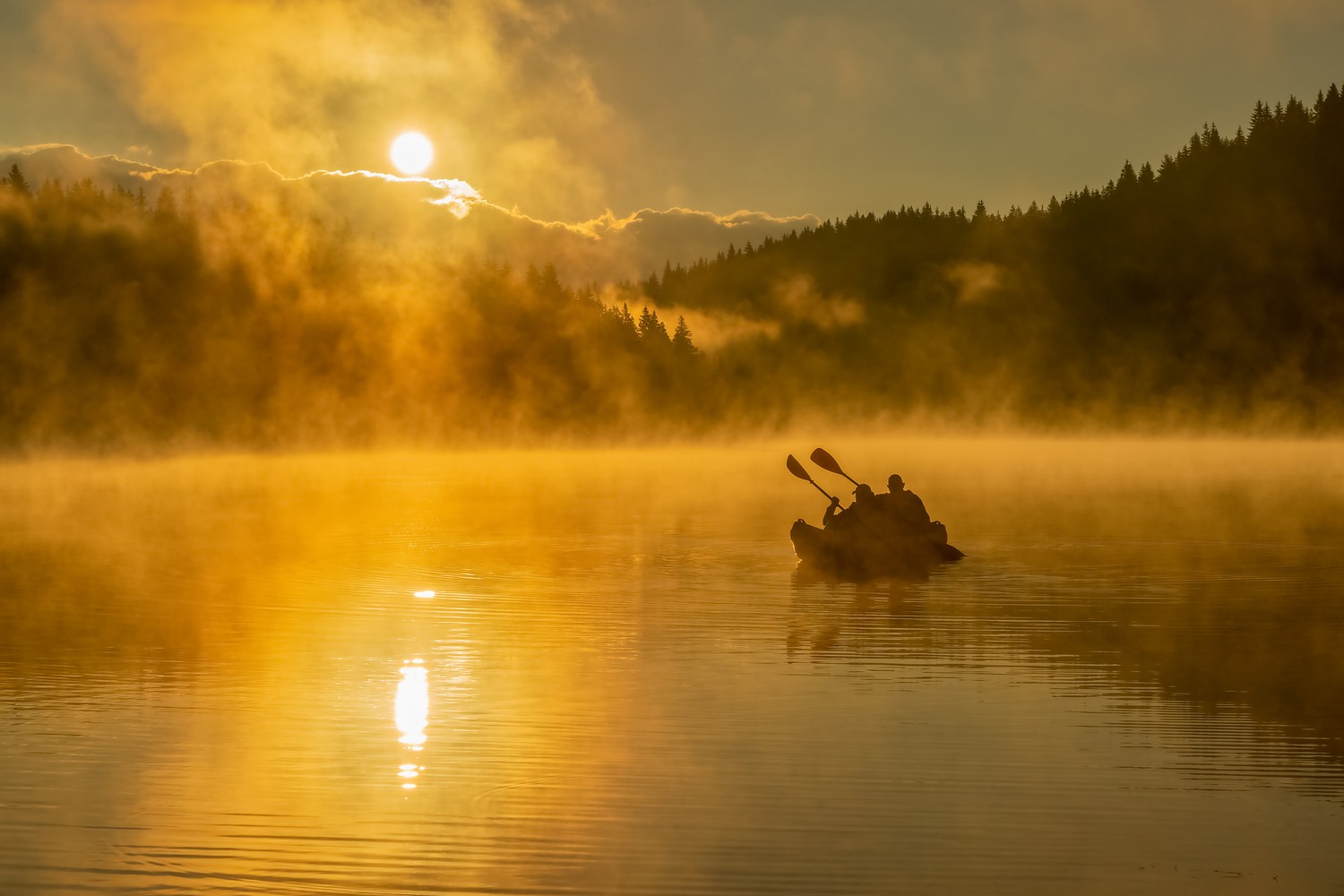 At the end of summer, I visit one of my favorite lakes and saw 2 guys with kayak settling into the neighboring bungalow. I bought them an Irish coffee (it was more “Irish” than “coffee”) and managed to convince them to drop the boat into the icy waters at 5:30 next morning. No sooner said than done.