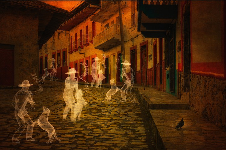 Spirit of Ciriaco and dog dancing on Street