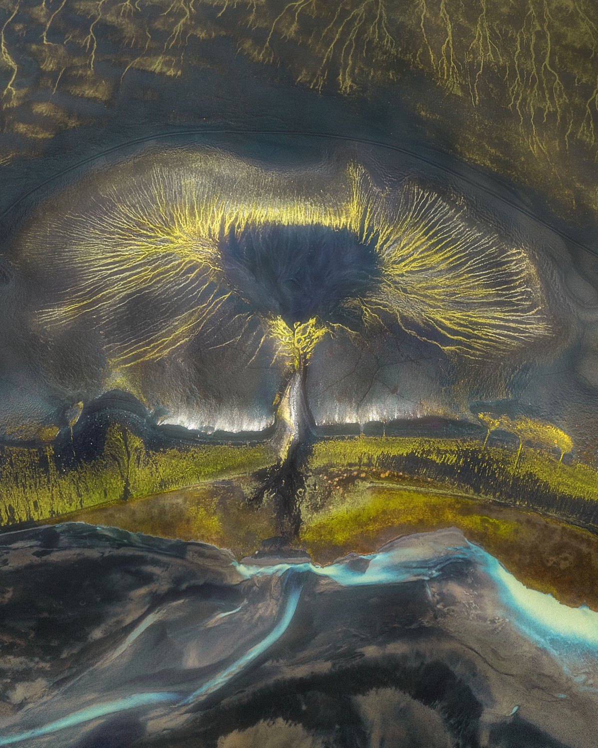 A freshly erupting volcano in south west Iceland is happily greeted with the wildest dance of the northern lights, both ultimately crafted by the rawest our nature has to offer - an unbelievable mixture of color display, almost too hard to comprehend. Truly a once in a lifetime event.