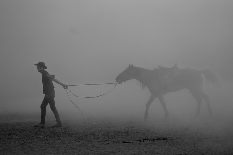 A man and a horse in the fog. The path is unclear, but the steps are firm. The deepest ties are often the ones unseen.