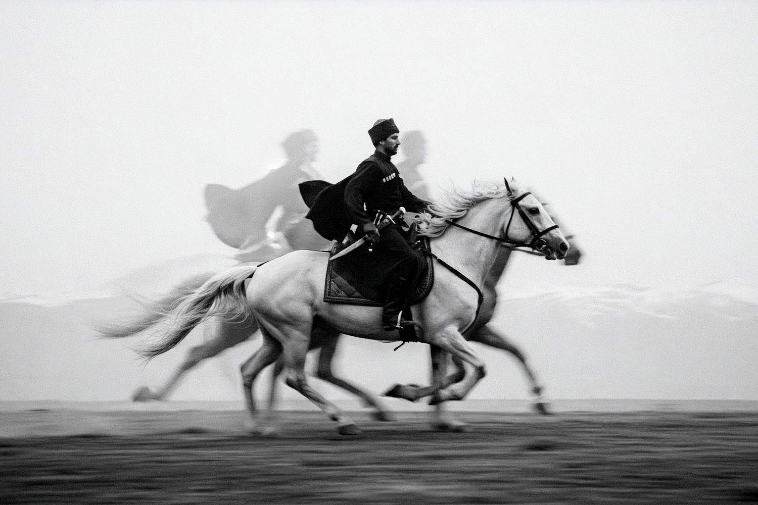 Barefoot nomads roaming the desert; tribe members laughing together, their faces covered in paint; youths on horseback galloping across Tibetan plains–these are the subjects of Still Points in a Turning World, a fascinating series by photographer Terri Gold that documents the few indigenous tribal cultures left in the world. The New York-based photographer travels to faraway locations like Niger, Ethiopia, China, and India to capture stunning images of tribes and their traditional rituals. Rendered in achromatic tones with striking pops of blue, the hauntingly beautiful infrared portraits preserve the memory of clans and cultures that, although shrinking with each passing year, are still rich with unique histories and customs dating back centuries. “Indigenous cultures that still follow their traditional way of life are rapidly disappearing,” Gold writes in her artist statement. “Globalization and the push of technology into once isolated areas [are] threatening to forever alter the old ways. At risk is a vast archive of knowledge and expertise. What is the value of ancient practices? What will be discarded and what will be treasured? The timeless past will soon meet the imminent future. What will become of us if the myriad voices of indigenous people fall silent?”