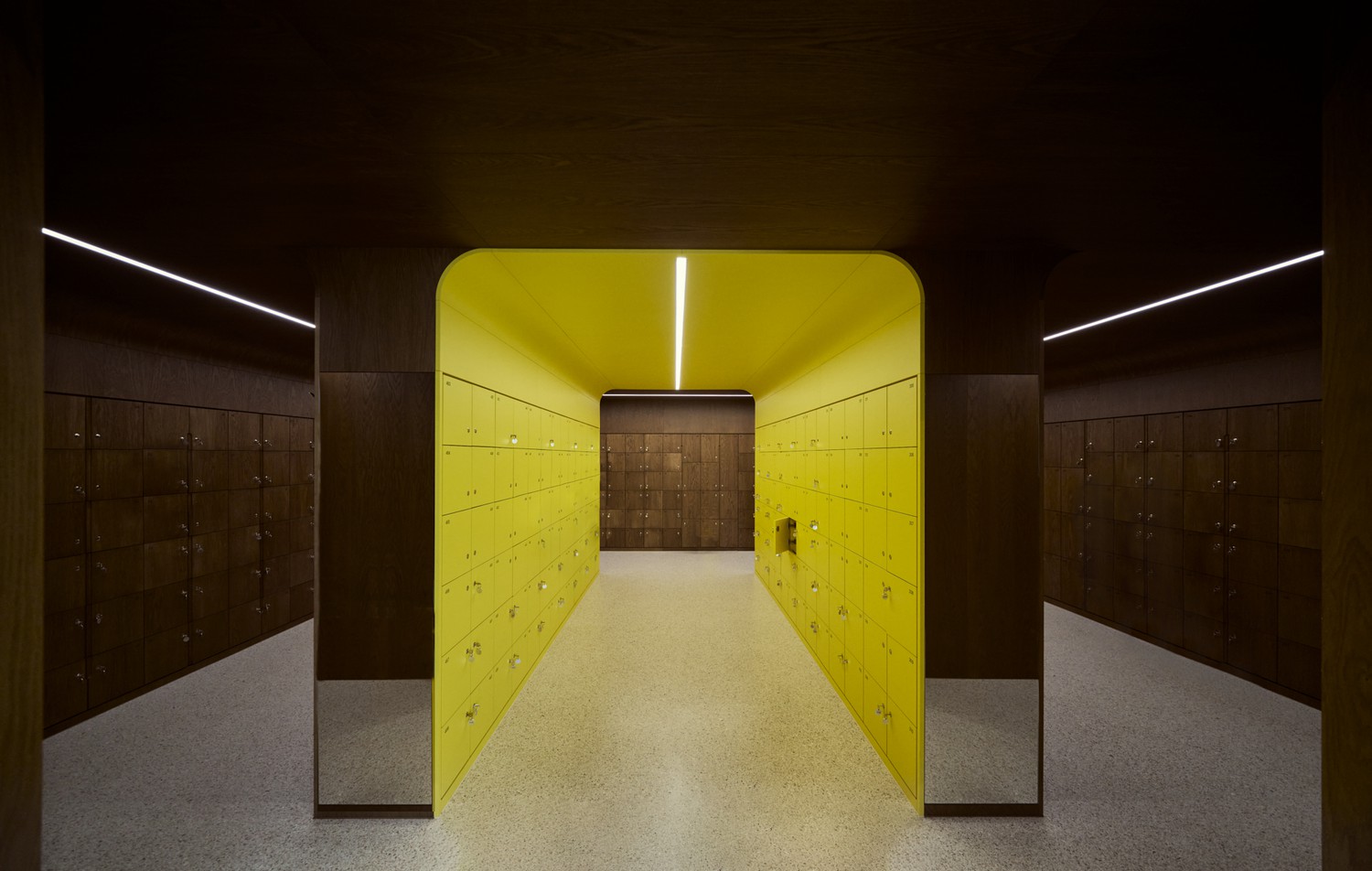 The locker room in the Fenix Art Museum in Rotterdam, The Netherlands. Architecture and refurbishment design was carried out by Ma Yansong for MAD Architects.