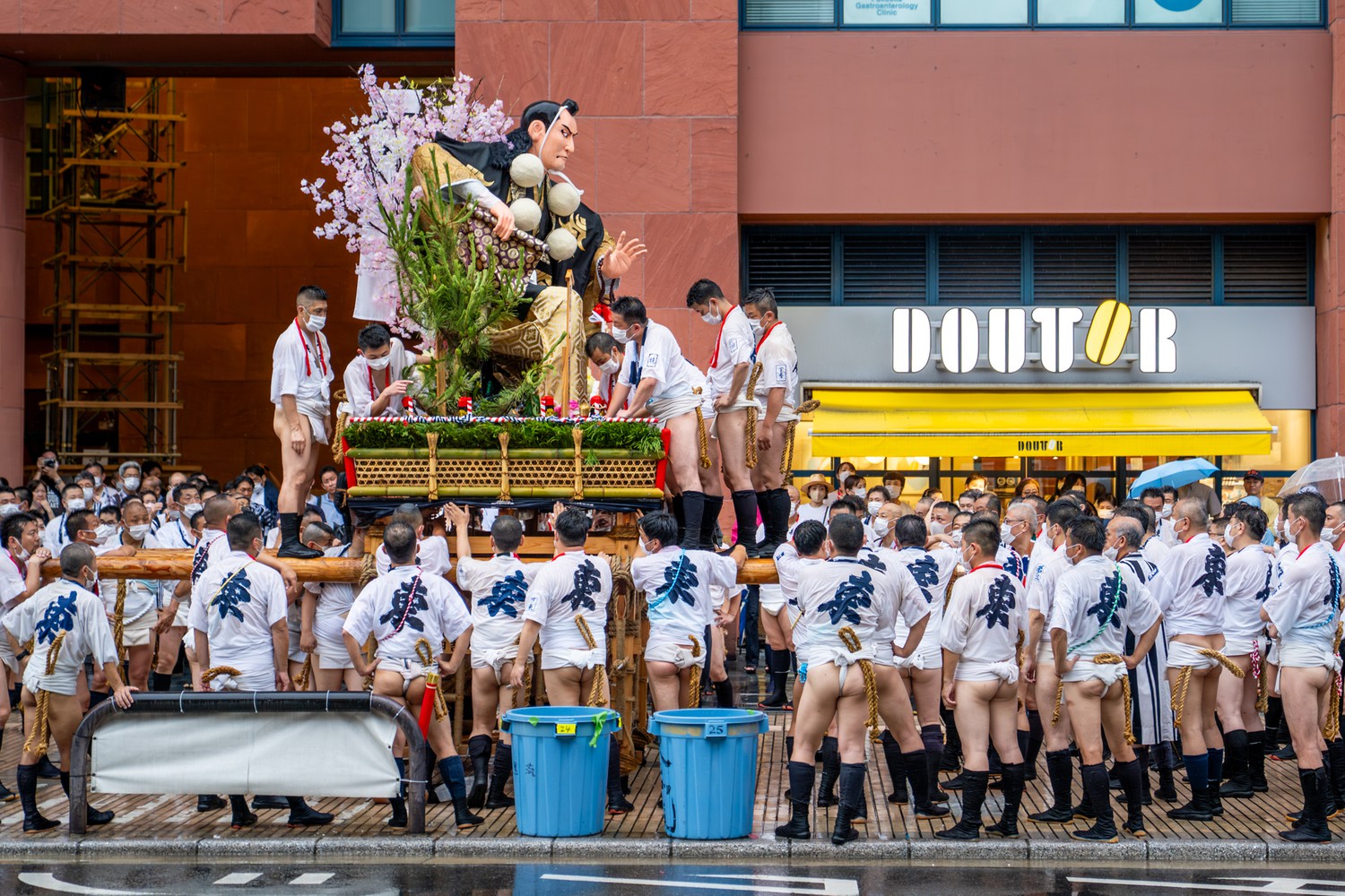 The Hakata Gion Yamakasa is a festival celebrated in the 1st half of July in Fukuoka City, the largest city in Japan’s southwestern island of Kyushu. Several teams of men would race around the city before the break of dawn, carrying one-ton wooden floats known as the Kakiyama.
