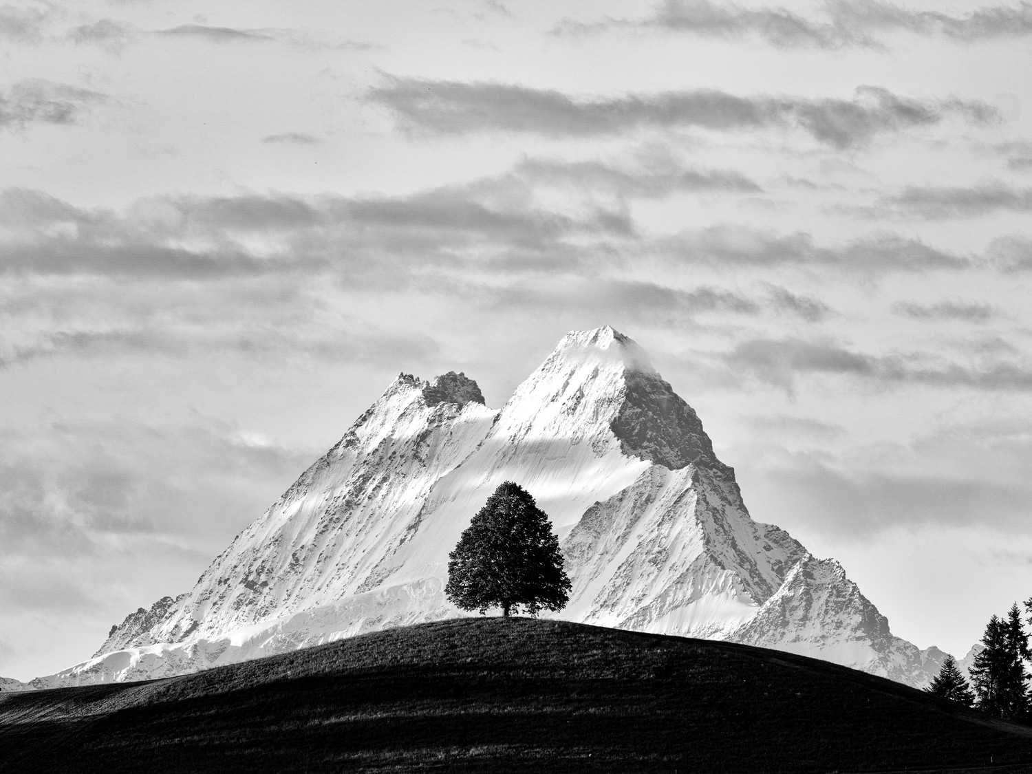 Lonely Linden Tree in front of the Schreckhorn Mountain, Switzerland
