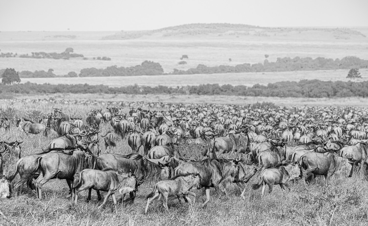 Every year thousands of wildebeest carpet the savannah of Kenya in search of greener grass. In this moment, the herds stretched as far as my eye could see.