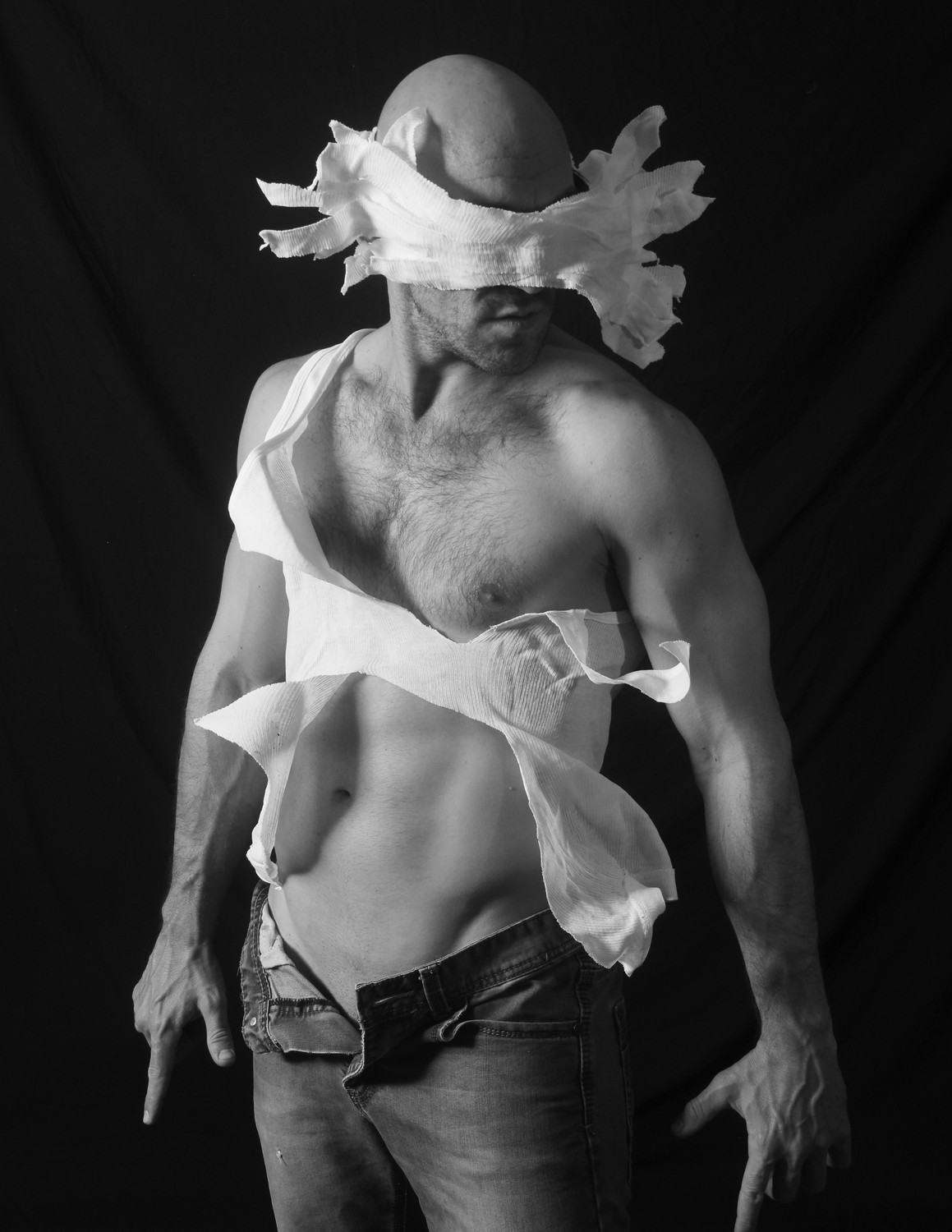 Self-portraits manifesting the body as the source of movement and language, disqualifying the face for that purpose. The body represented as any- body creates the possibility of a conceptual appearance.