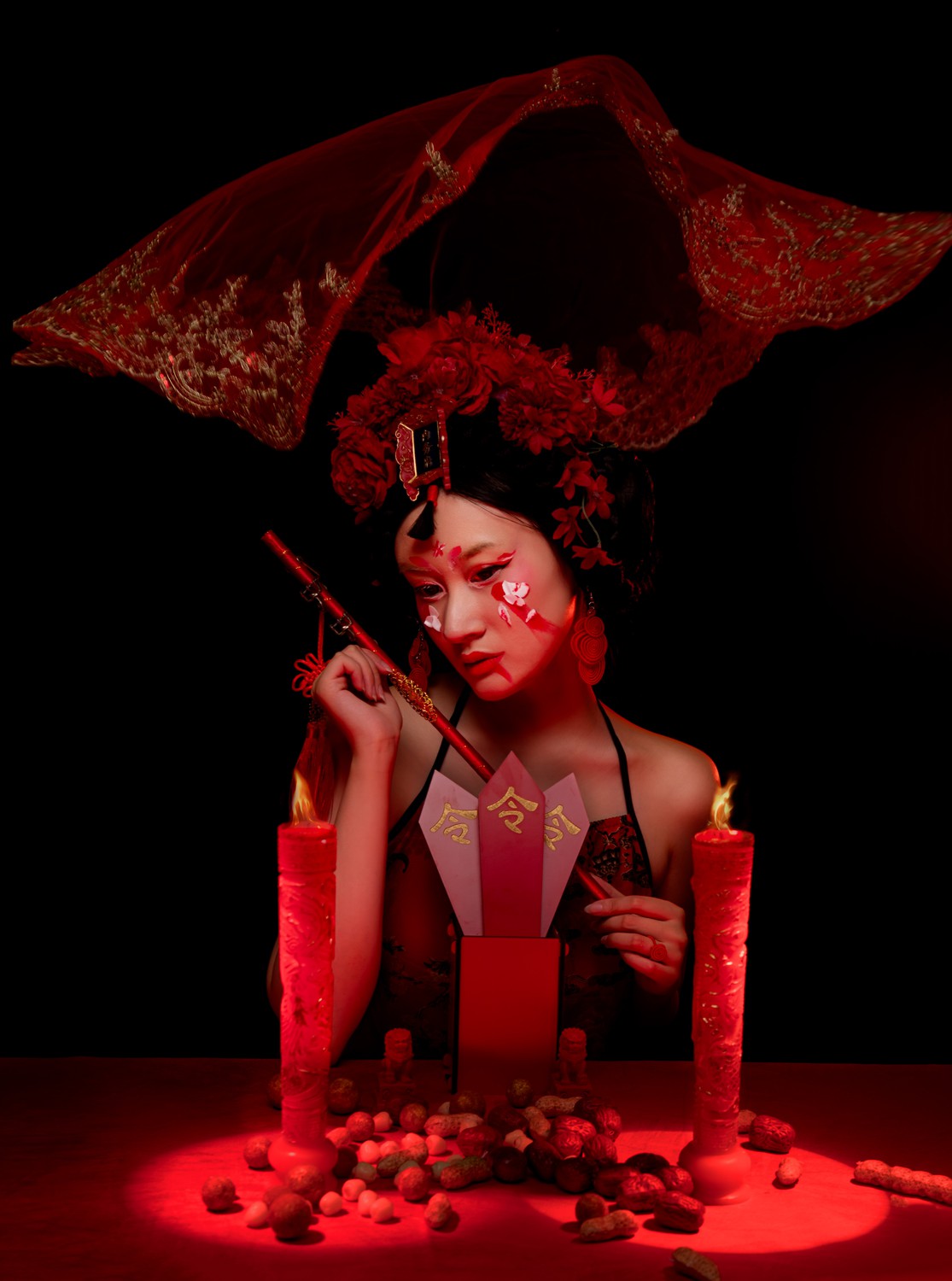 The Chinese style red color expresses a strong emotion of seeking luck.