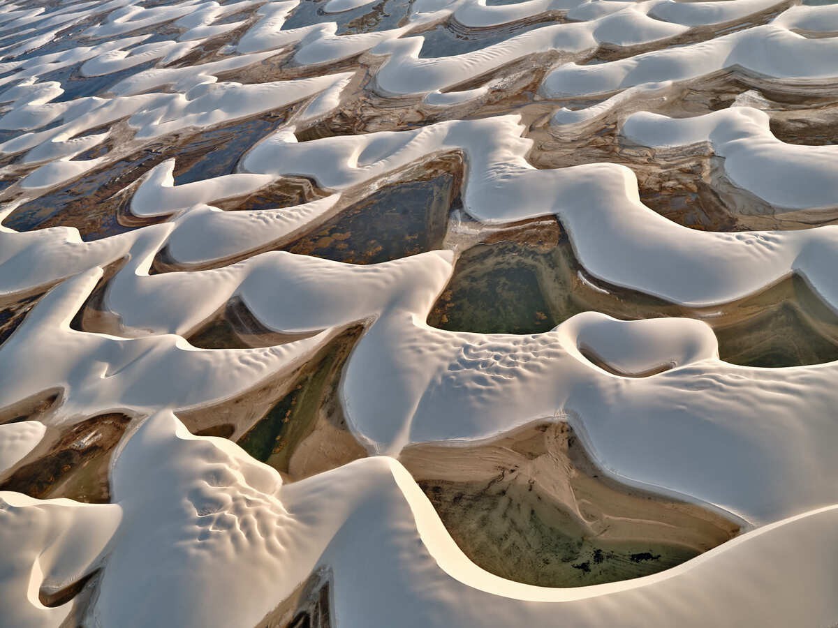 I captured this image from a small plane flying over Lençóis Maranhenses National Park, one of Brazil's main natural gems. Such a surreal relief is formed and changed by the wind. Sometimes the dunes reach a height of forty meters! And the lagoons are filled thanks to rain and tides.