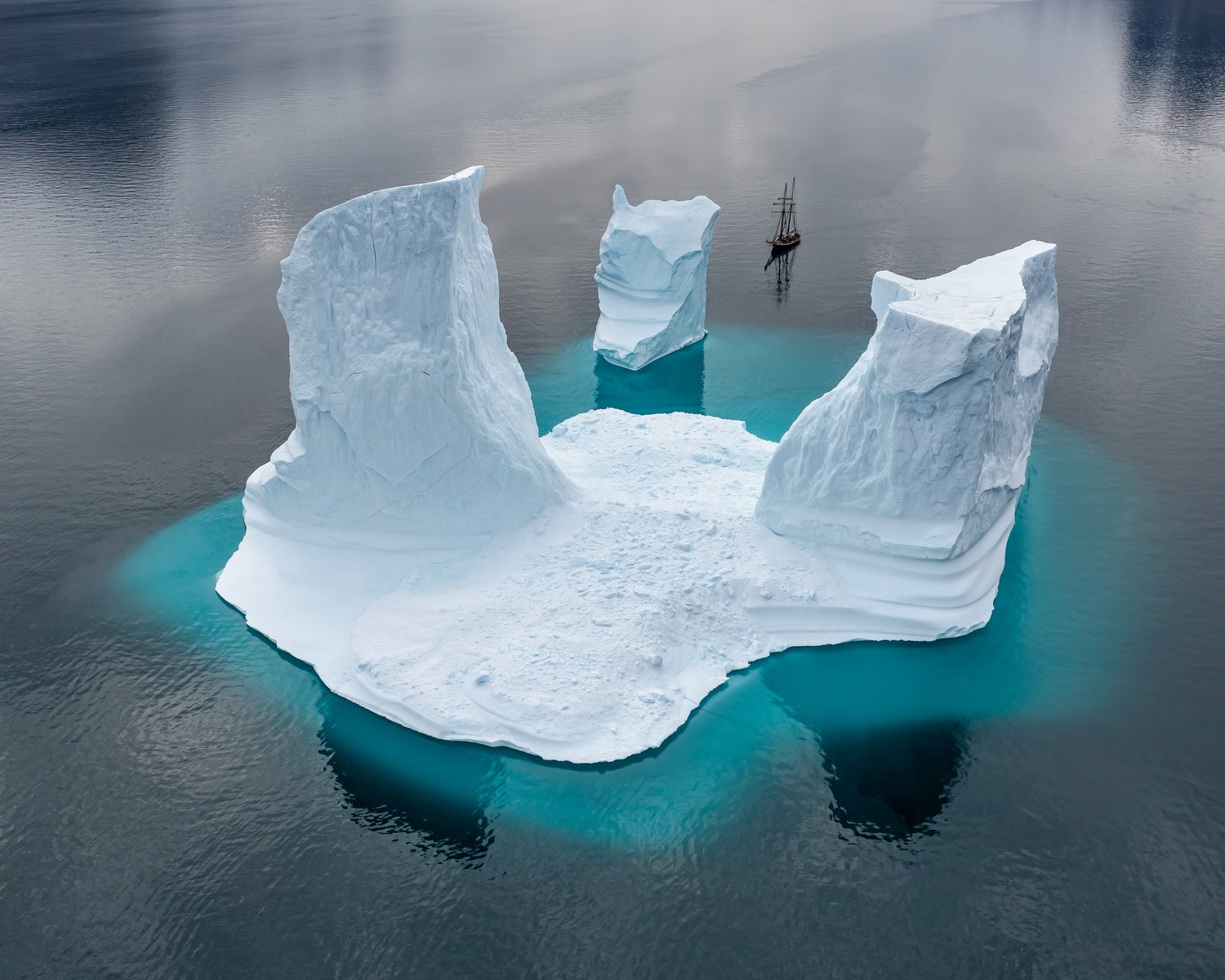 Off the east coast of Greenland, the "Donna Wood" (a 102 foot sailing ship from Denmark) skirts around the edge of a large iceberg. I was on the ship and captured this image using a drone. The most difficult part was avoiding the ship's rigging when launching and landing the drone.