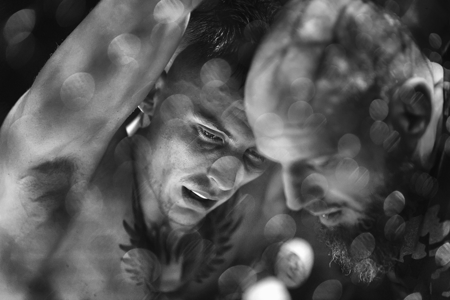 Fighting ring, mixed martial arts, Valhalla fight night. A moment of tranquility between a fighter and his coach, during the time out.