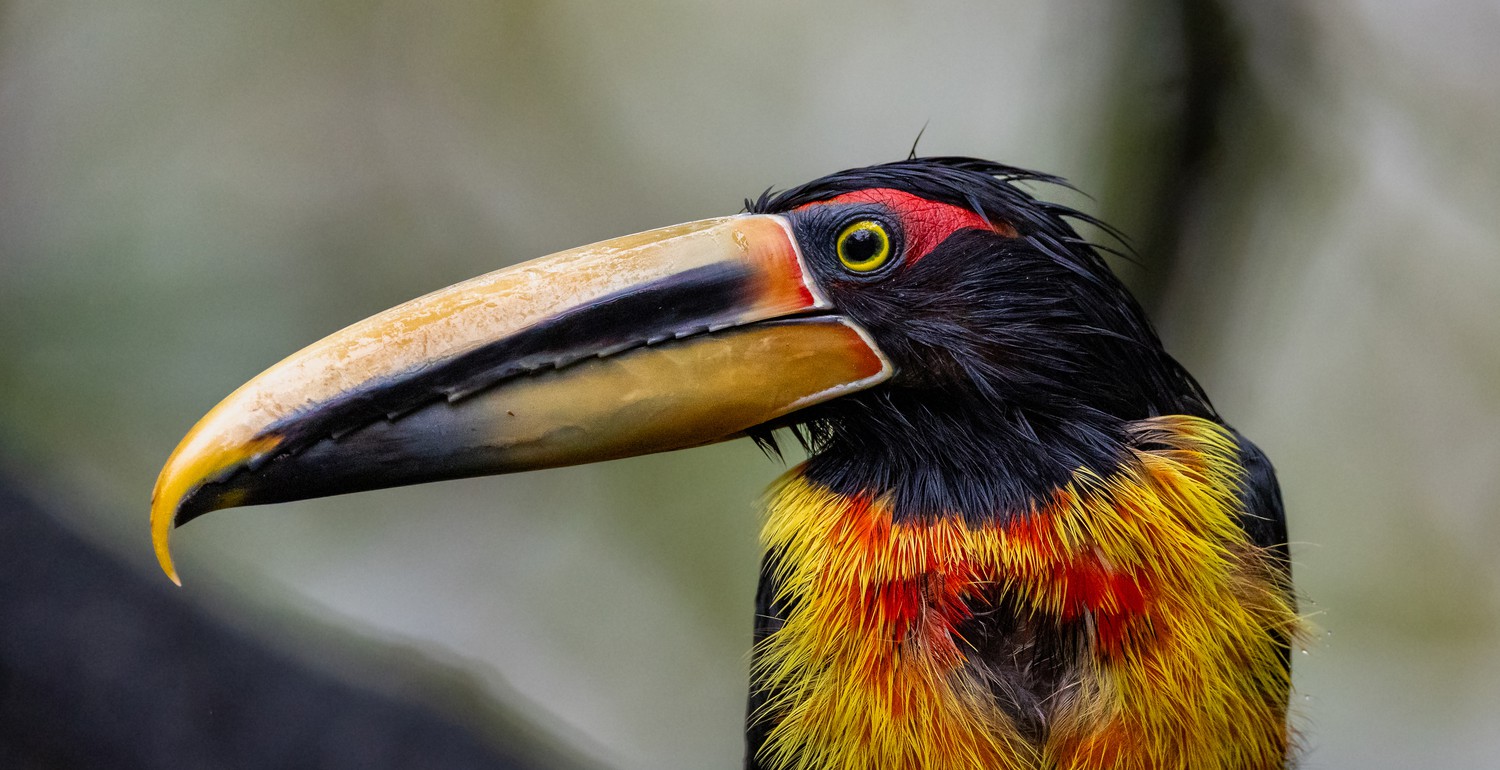 I truly love the combo of the long beak, the strongly colored skin around the eyes & stark colors of the breast feathers. It was pouring cats and dogs on that day in Ecuador’s Cloud Forest. I got this Pale-mandibled Araçari at eye level, preening, lucky to be close enough for this detailed shot.