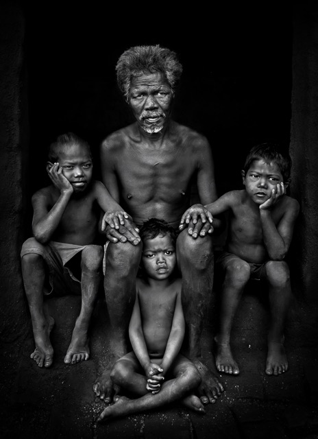 This photograph, I believe, must exist only in black and white. The raw simplicity of their lives, the strength of their intergenerational bonds, and the boldness of their characters are best expressed through the subtle interplay of blacks, whites, and grays.